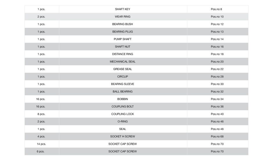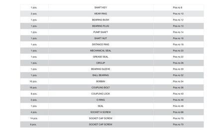 The Overhaul Kits for CGD pumps consist of: