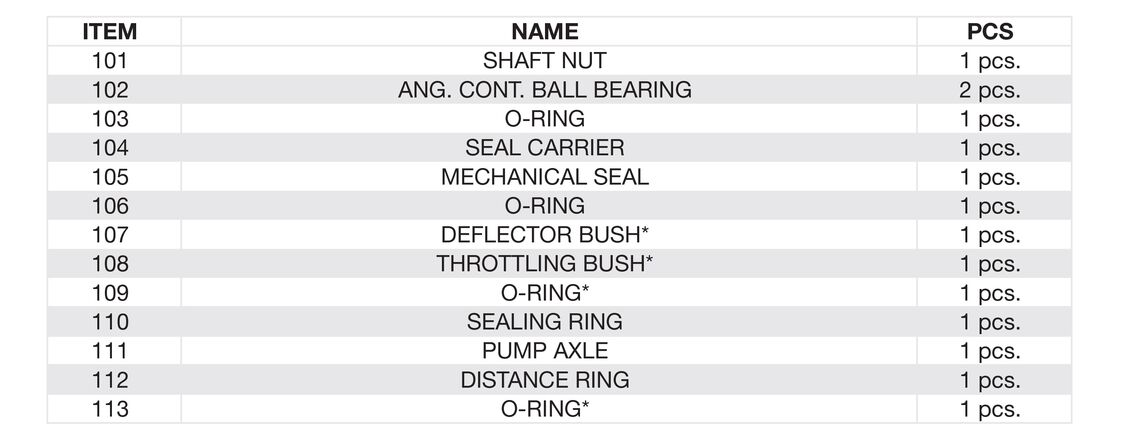 The C2G Seal Bearing Assembly (SBA - D) consist of: