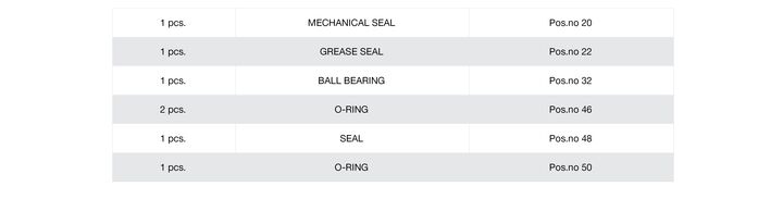 The picture below shows the Repair Seal Kit for pump type CGC 150